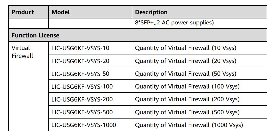 Spesifikasi Fungsi Firewall Virtual Huawei LIC-USG6KF-VSYS |